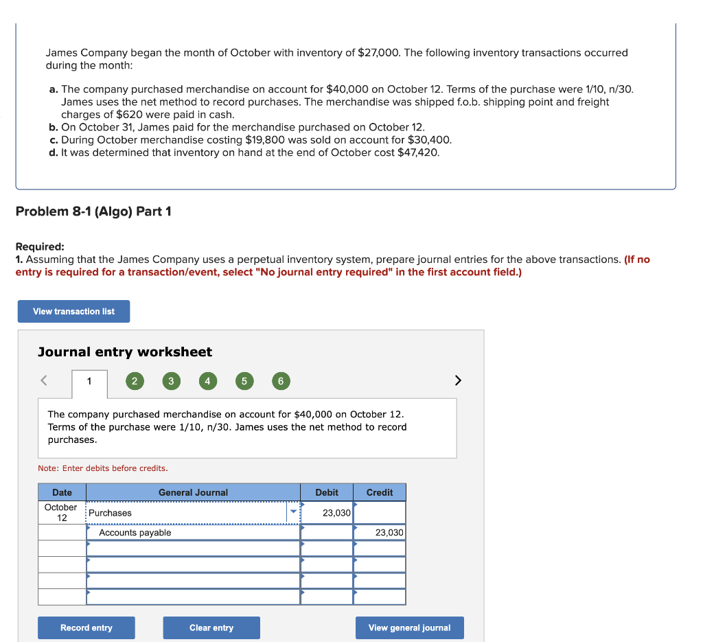Solved James Company began the month of October with