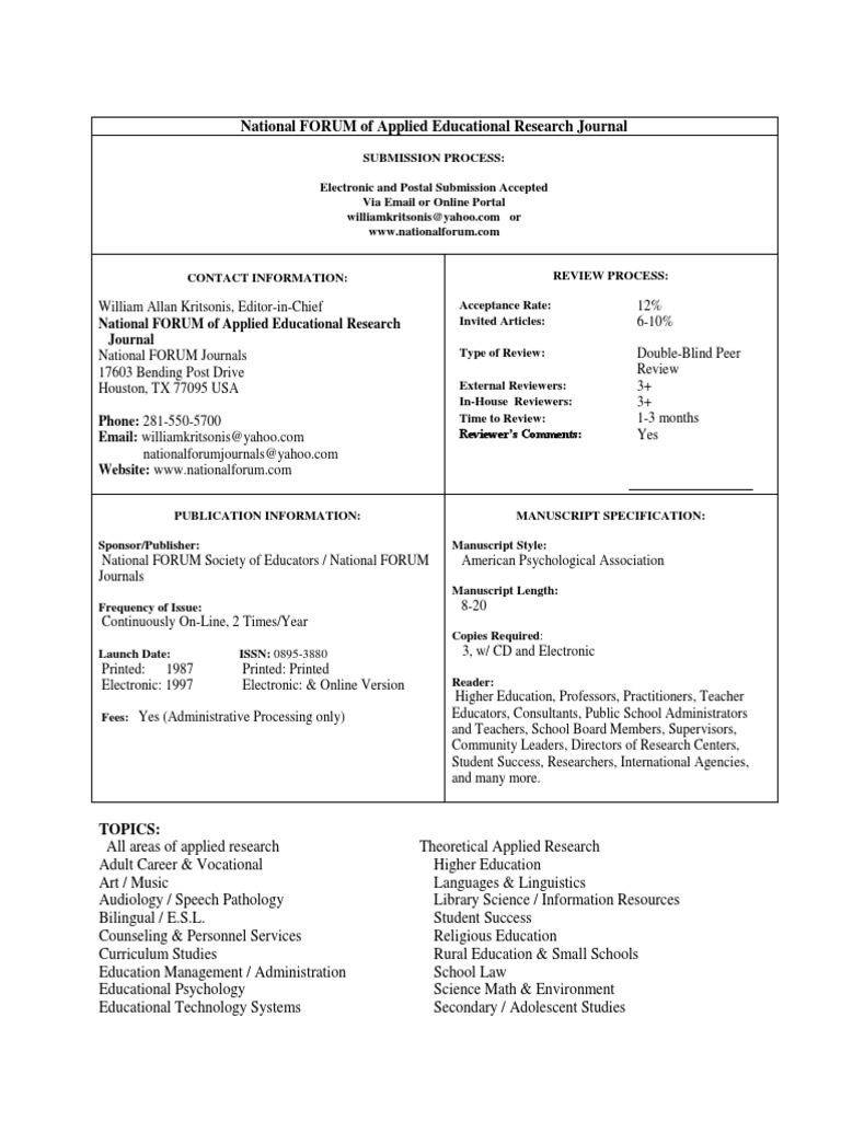 National FORUM of Applied Educational Research Journal /NF AERJ