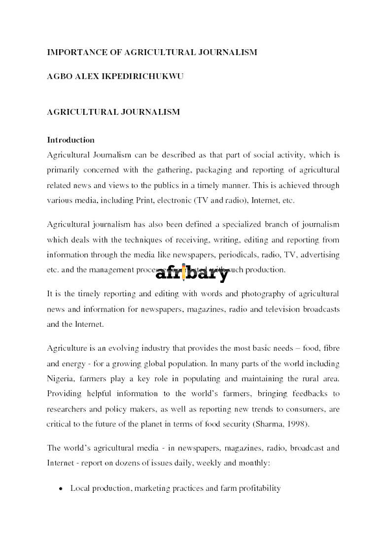 IMPORTANCE OF AGRICULTURAL JOURNALISM Afribary