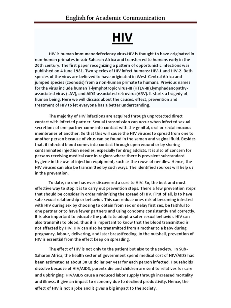 Essay Hiv PDF Hiv/Aids Medical Humanities
