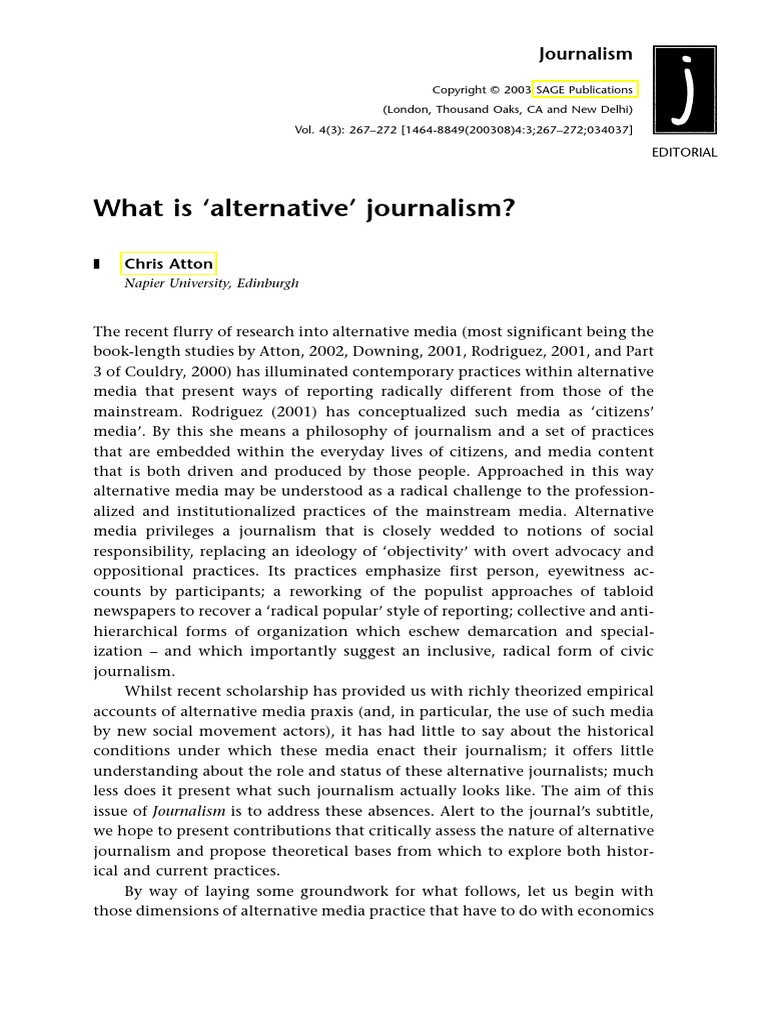 Web by means of an exploratory empirical study, utilizing qualitative research methods with a sample group of alternative media practitioners within the uk, the. Web alternative journalism is the first book to investigate and analyse the diverse forms and genres of journalism that have arisen as challenges to mainstream news coverage. Web this is my final column. It widens the trajectory of media studies and creates different modes of reading, writing.