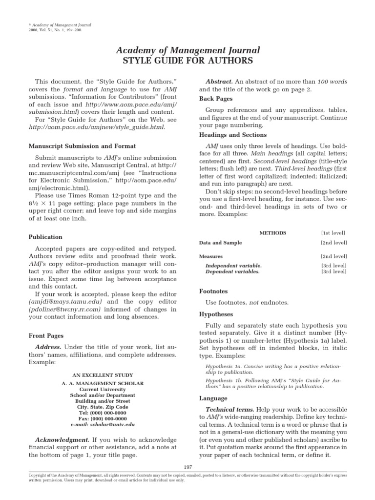 I am very pleased to have been given the opportunity to introduce the new editorial team of academy of management journal ( amj) and outline the team’s priorities for. For “style guide for authors” on the web, see. Web amj paper development workshop, switzerland. The mission of amj is to publish empirical research that tests, extends, or builds management theory and contributes to management practice.