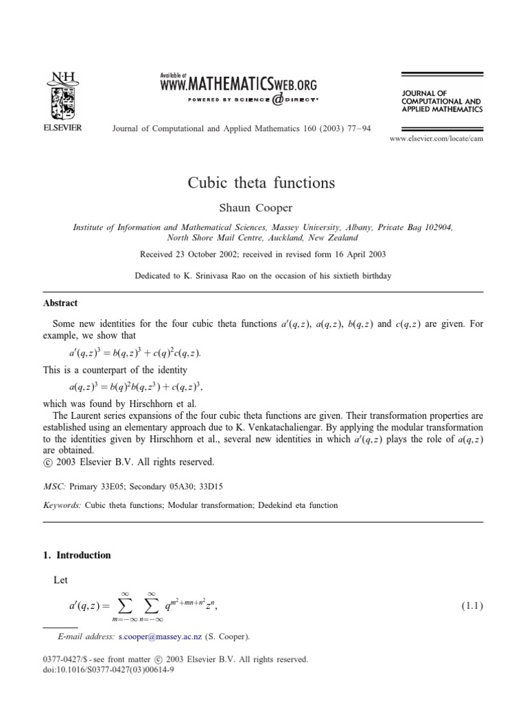Cooper S Cubic Theta Functions J. Comput. and Appl. Math. 160 (2003