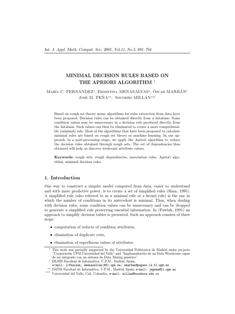 Minimal Decision Rules Based On The Apriori Algorithm Int. J. Appl