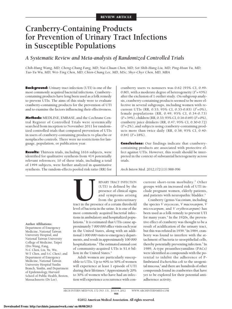4 Revision Sistemica Cranberry Arch Intern Med 2012 Urinary Tract