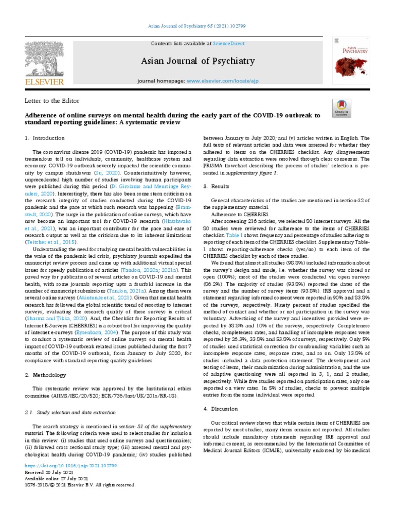 Asian Journal of Psychiatry Letter To The Editor PDF Systematic