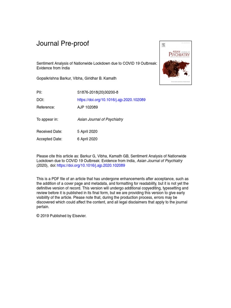 Journal PreProof Asian Journal of Psychiatry PDF Pandemic Epidemics