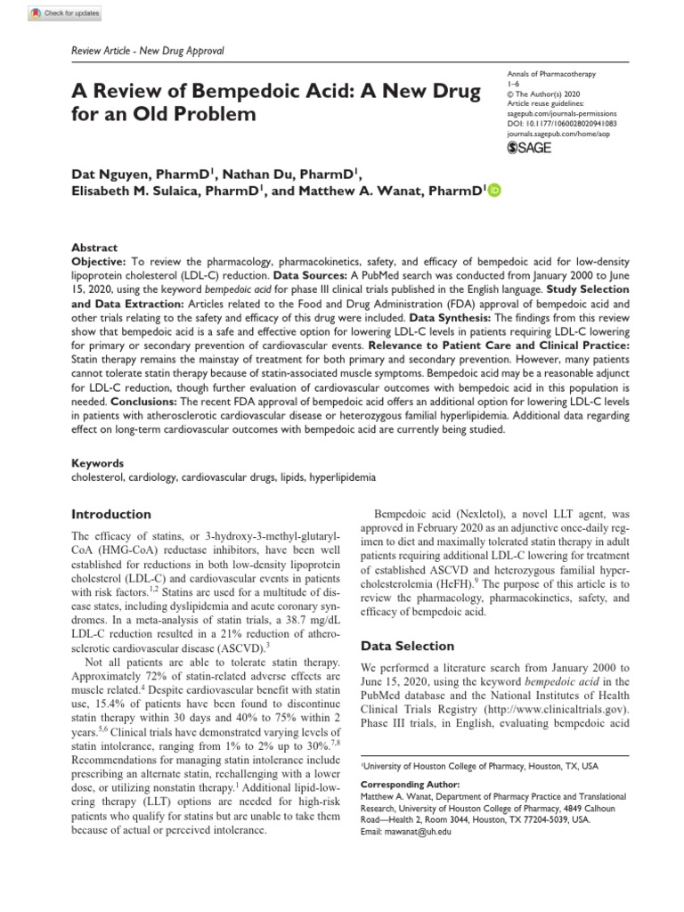 A Review of Bempedoic Acid A New Drug For Old Problem PDF Statin