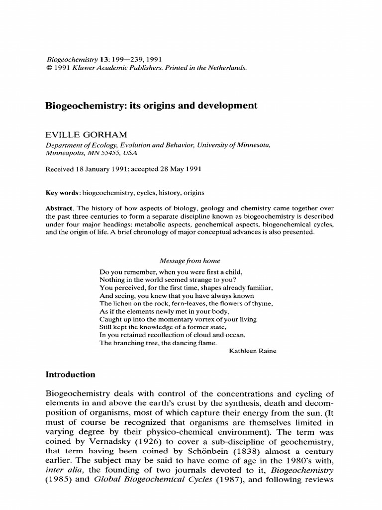 Biogeochemistry Its Origins and Development PDF Soil Geochemistry