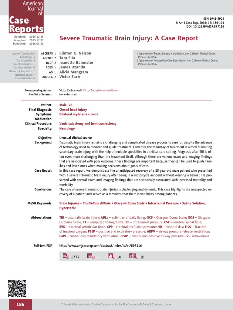 Patients with severe traumatic brain injuries (tbi) found that. It is an important cause of death or severe physical and mental. Question how common is.