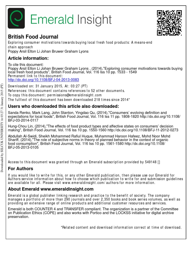 British Food Journal Article Information PDF Local Food Foods