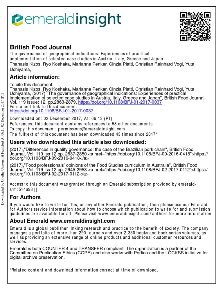 British Food Journal Article Information PDF Governance Business