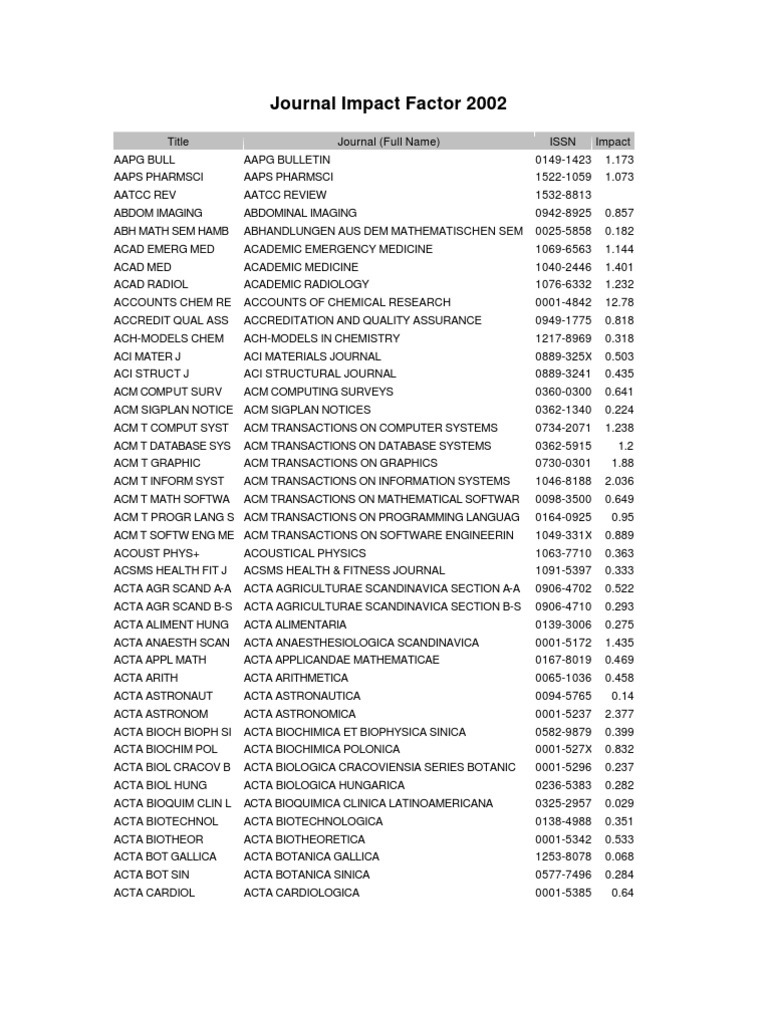The impact factor (if) is a measure of the frequency with which the average article in a journal has been cited in a particular. In.