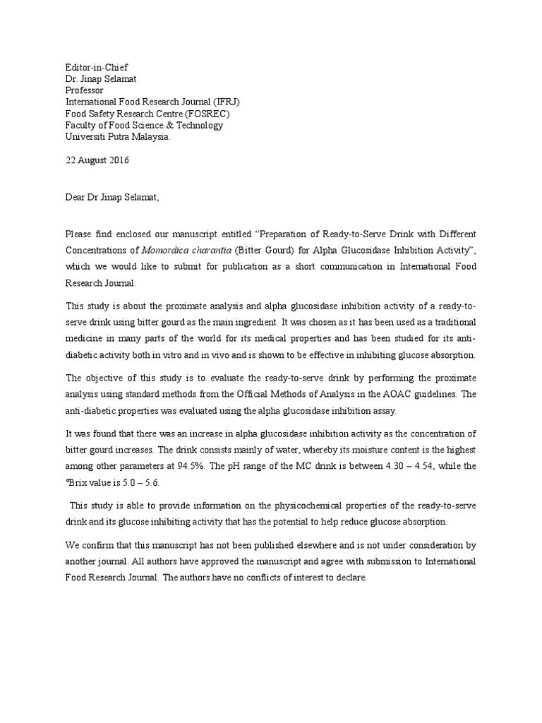 Web when it comes to submitting your scientific manuscript to a journal, think of your cover letter as your first handshake with the editor. How.