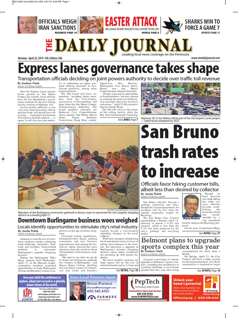 To buy more copies, call 866. The san mateo daily journal is a daily newspaper published six days a week, monday through friday plus a..