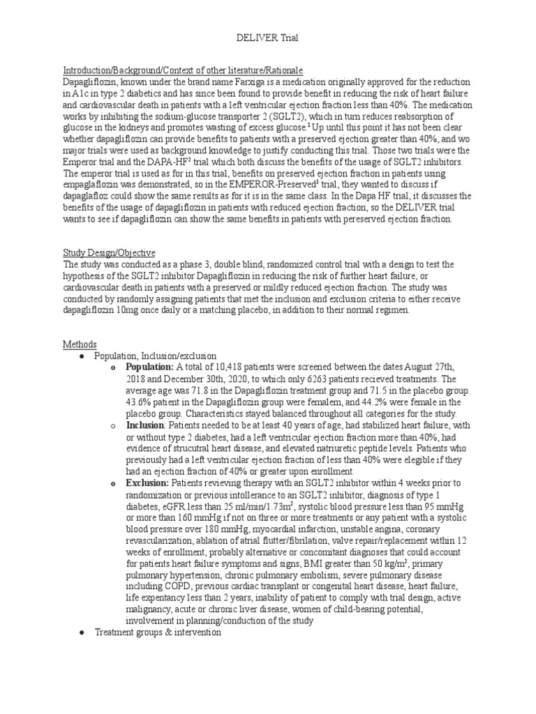 A prespecified analysis of the deliver trial | hospital medicine virtual journal club | washington university in st. Web dapagliflozin reduced the combined risk of worsening heart failure or cardiovascular death among patients with heart failure and a mildly reduced or preserved ejection fraction. The deliver trial showed that dapagliflozin is superior to placebo in improving hf outcomes among patients with symptomatic stable mildly reduced or preserved lvef (ef >40%), irrespective of diabetes status. Link to article at pubmed.