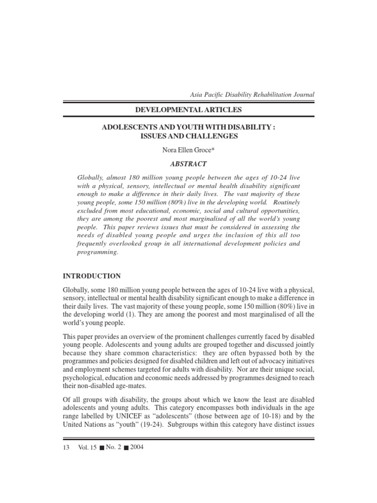 Developmental Articles Asia Pacific Disability Rehabilitation Journal