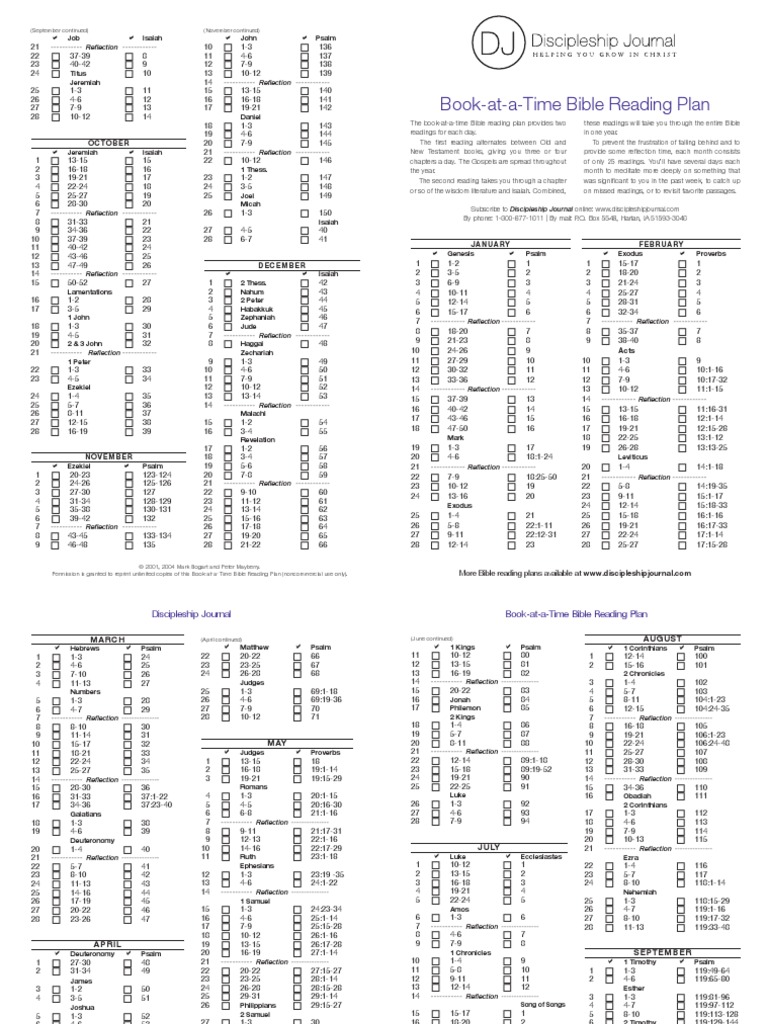 Discipleship Journal Bible Reading Plan - Web 7 tips to help others grow in christ. Web the discipleship journal bible reading plan offers special features that will aid you in your journey through the bible. Web discipleship journal reading plan. Read the new testament in a year. We’ve updated this plan, so it’s more adaptable to your. 5 minutes a day, 5 days a week, 5 ways to dig deeper. By reading from four separate places in the scriptures every day, you will get a better grasp of the unity of the scriptures. Each month has a different book of the new testament and the old testament, with daily readings. Web the discipleship journal bible reading plan. Soul care for hard times.