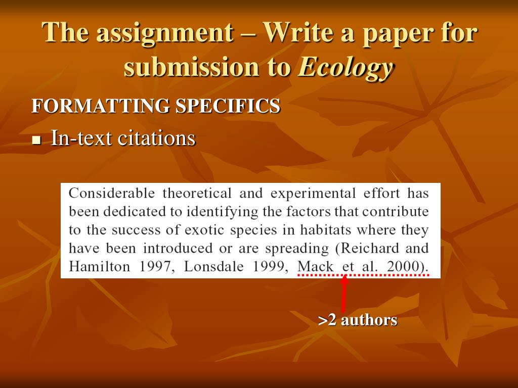 It uses the author year format, e.g., (peterson 2004), for in text citations and organizes. Web ecosphere, ecology, ecological applications, and. Web how to format.
