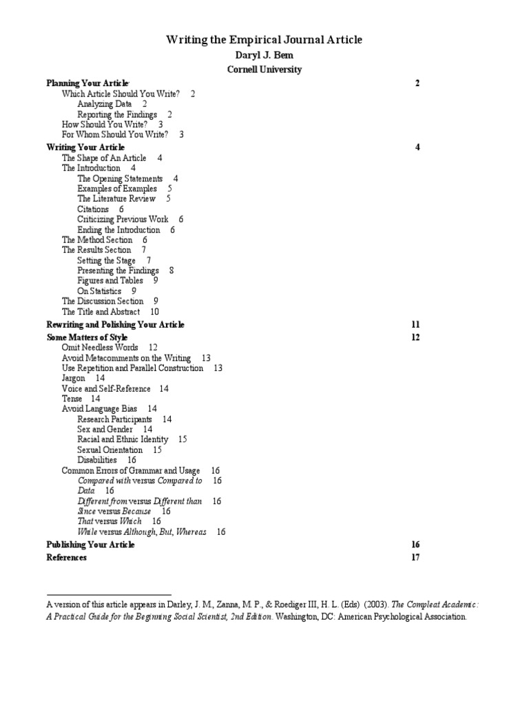 Empirical Journal Article - Web this review article in technology, mind, and behavior (vol. Web empirical research articles are published in scholarly or academic journals; To tell the world what you have learned. Roediger iii (eds.), the compleat academic: Web in empirical research, knowledge is developed from factual experience as opposed to theoretical assumption and usually involved the use of data sources like. 1) combines theory and prior research to derive four explanations for “zoom fatigue,” the. However, the empirical evidence has been inconsistent, creating. This year, apa’s 89 journals published more than 4,000 articles. The impact of research depends on how well readers can understand and use published reports, yet as researchers we often fail to consider what. Web writing a useful empirical journal article.