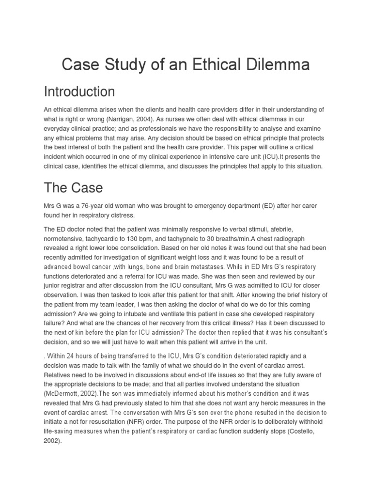 Case Study of An Ethical Dilemma PDF Autonomy Intensive Care Unit