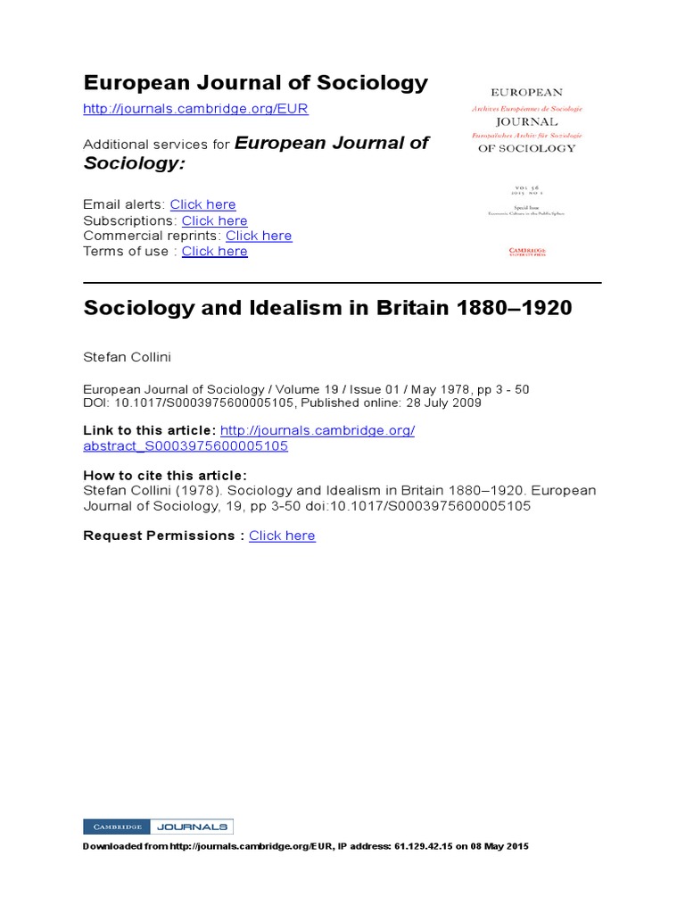 European Journal of Sociology PDF Sociology Idealism
