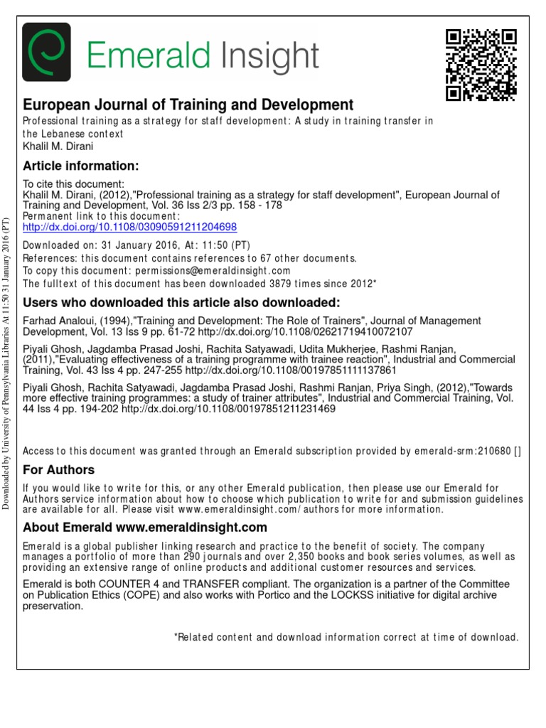 Web european journal of training and development is a journal covering the technologies/fields/categories related to business, management and accounting (miscellaneous) (q2); Published by emerald print.