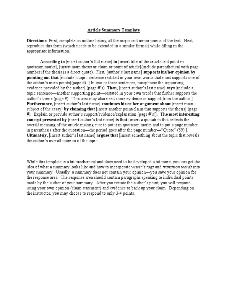 article summary template