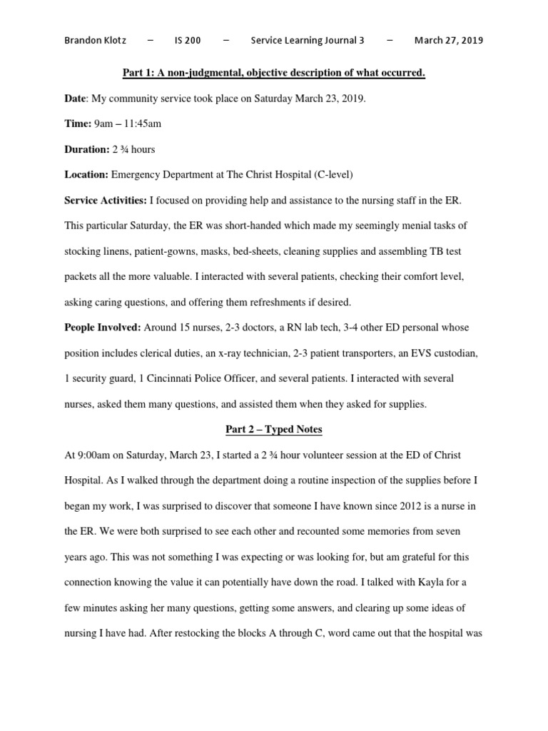 The following are extracts from a reflective journal written for the course, reflective nursing practice 1 by a first year student, chrissy poulos: Nursing students.