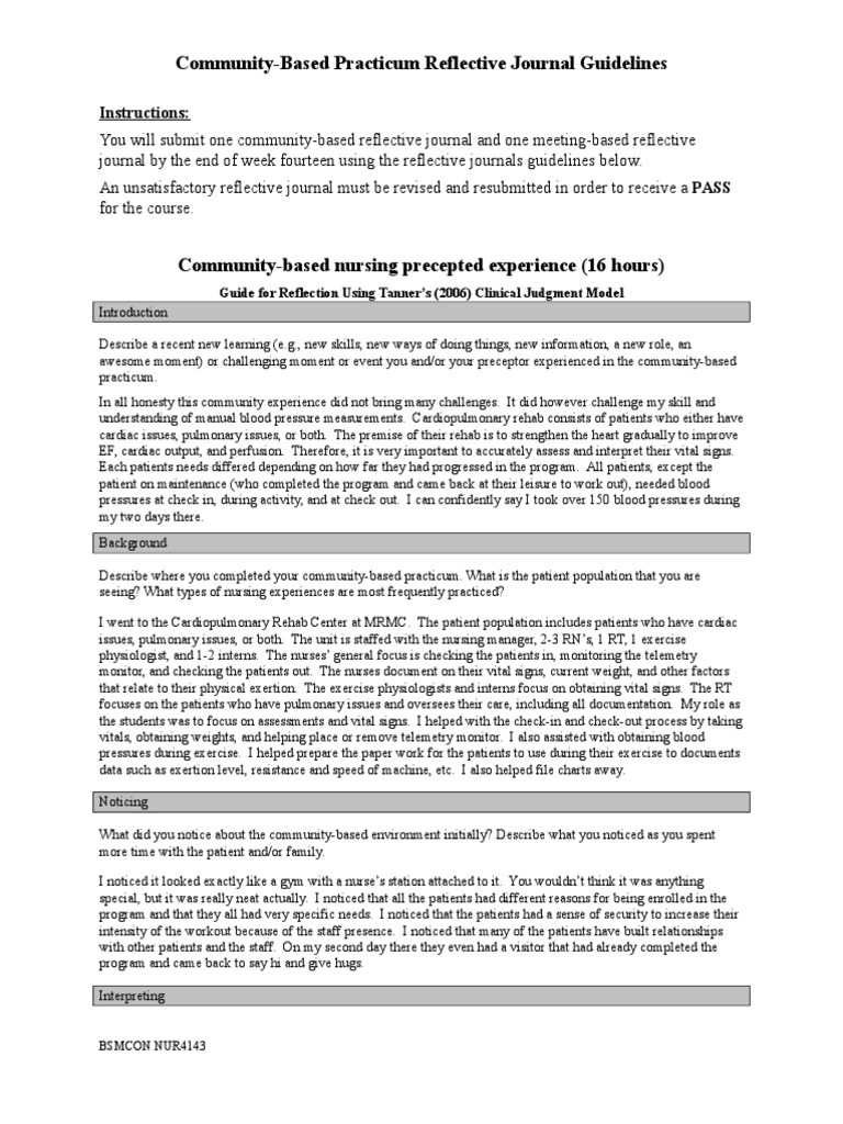 Thinking* writing* experiences from the clinical setting are ideal for building critical thinking skills if reflection is used as a teaching tool. The following are extracts from a reflective journal written for the course, reflective nursing practice 1 by a first year student, chrissy poulos: Web by systematically reviewing these 10 articles, the key perceptions of nursing students on the use of reflective practice broadly fell into two major categories:. What did you learn from.