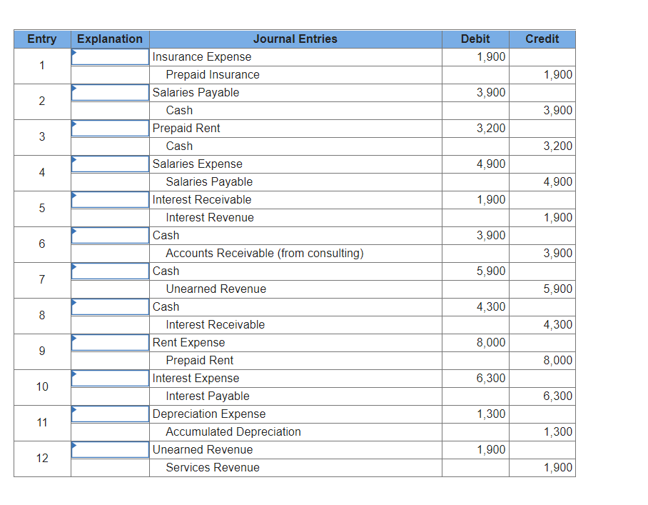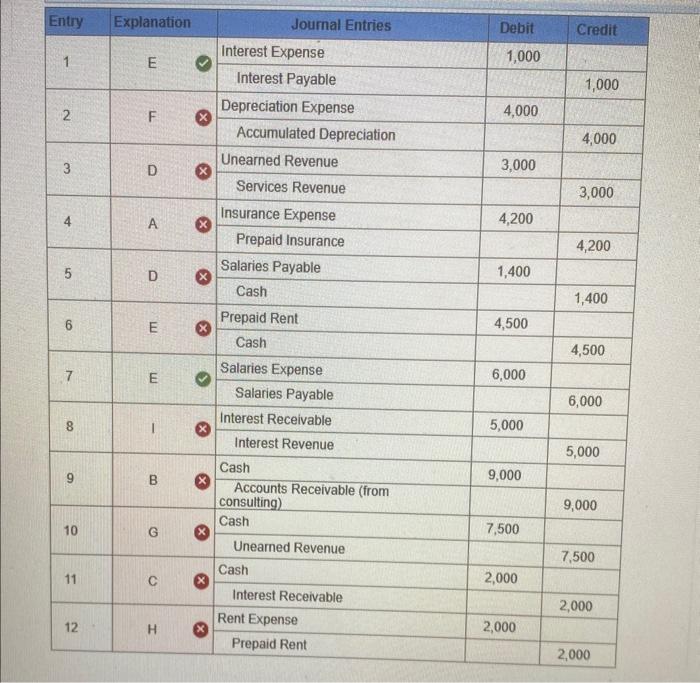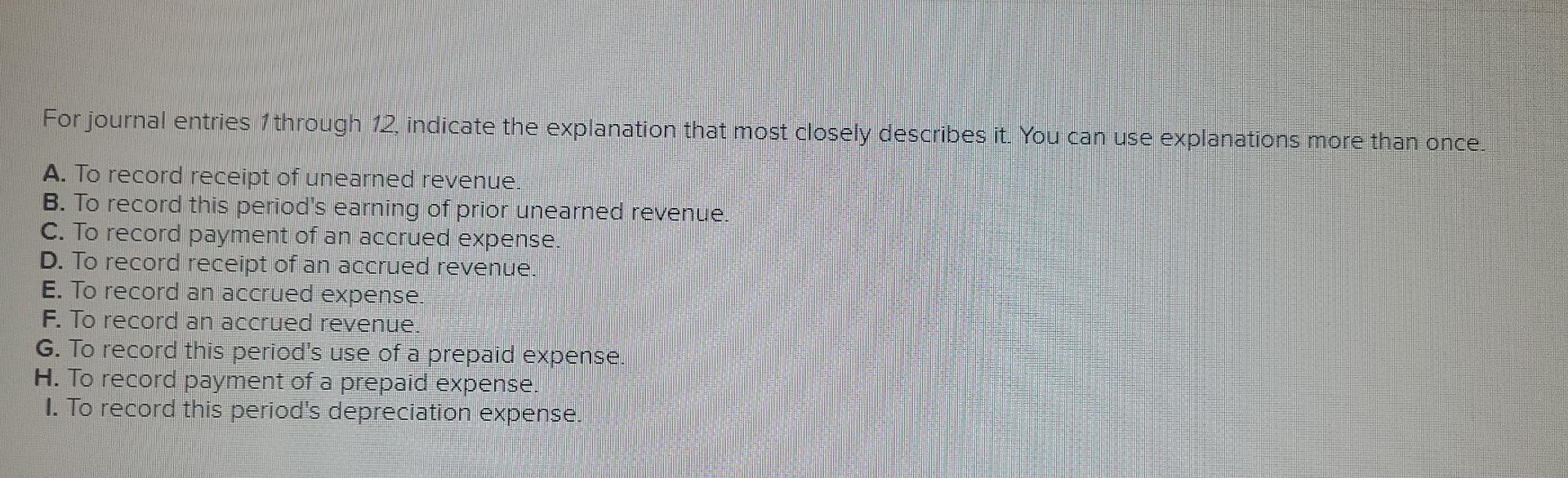Web For Journal Entries 1 Through 12, Indicate The Explanation That Most Closely Describes It.