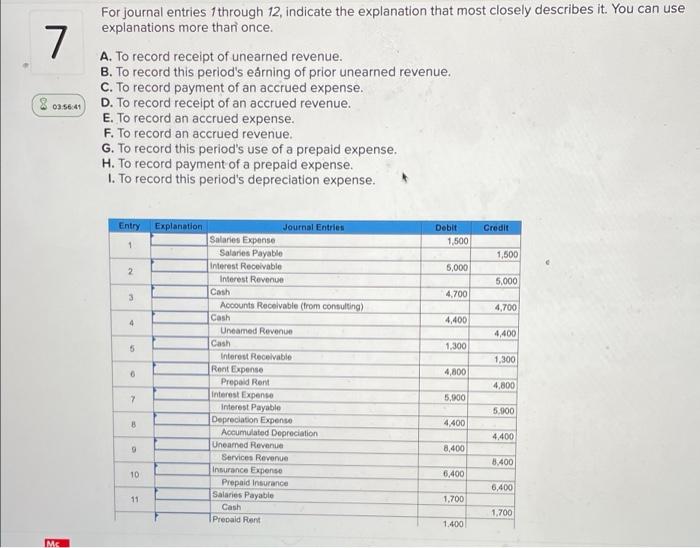 For Journal Entries Through 12, Indicate The Explanation That Most Closely Describes It.