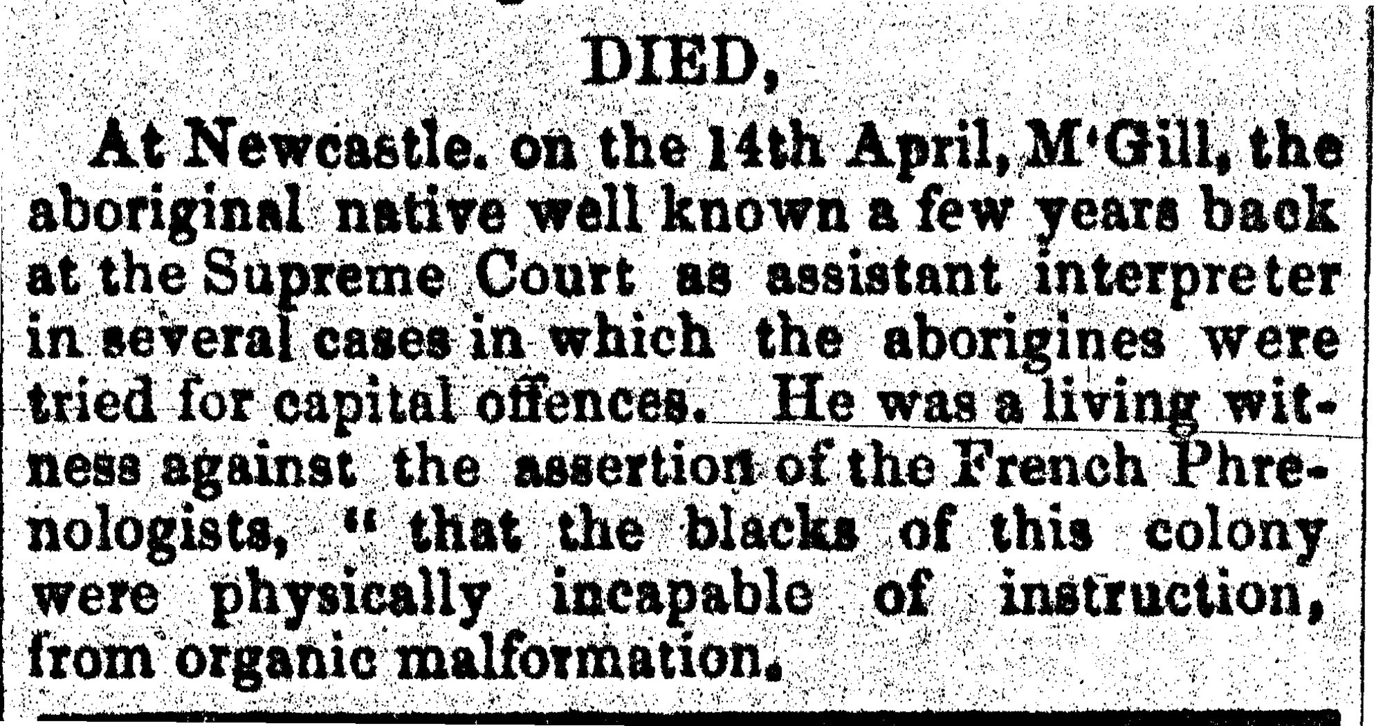 Death Notice McGill, Sydney Morning Herald, 1 May 1846 Living Histories