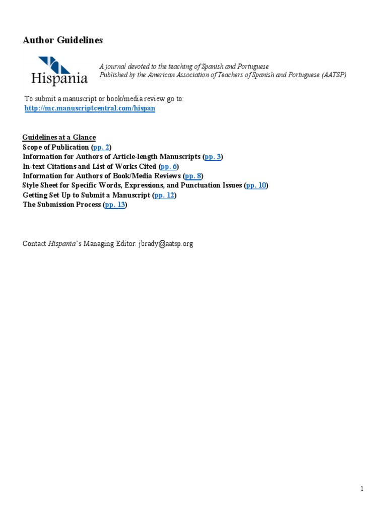 Web the journal invites the submission of original, unpublished manuscripts on applied linguistics, cultural studies, culture, film, language, linguistics, literary criticism, literature, and pedagogy having to do with spanish and portuguese. Hispania includes articles on pedagogy, literature, linguistics, an. Web hispania, a journal devoted to the teaching of spanish and portuguese, published by the american association of teachers of spanish and portuguese (aatsp), is a peer reviewed journal published four times per year. Hispania is the journal of the association of teachers of spanish and portuguese.