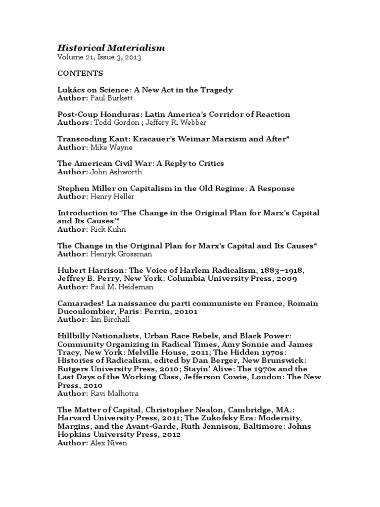Web Historical Materialism Is A Marxist Journal, Appearing Four Times A Year, Based In London.