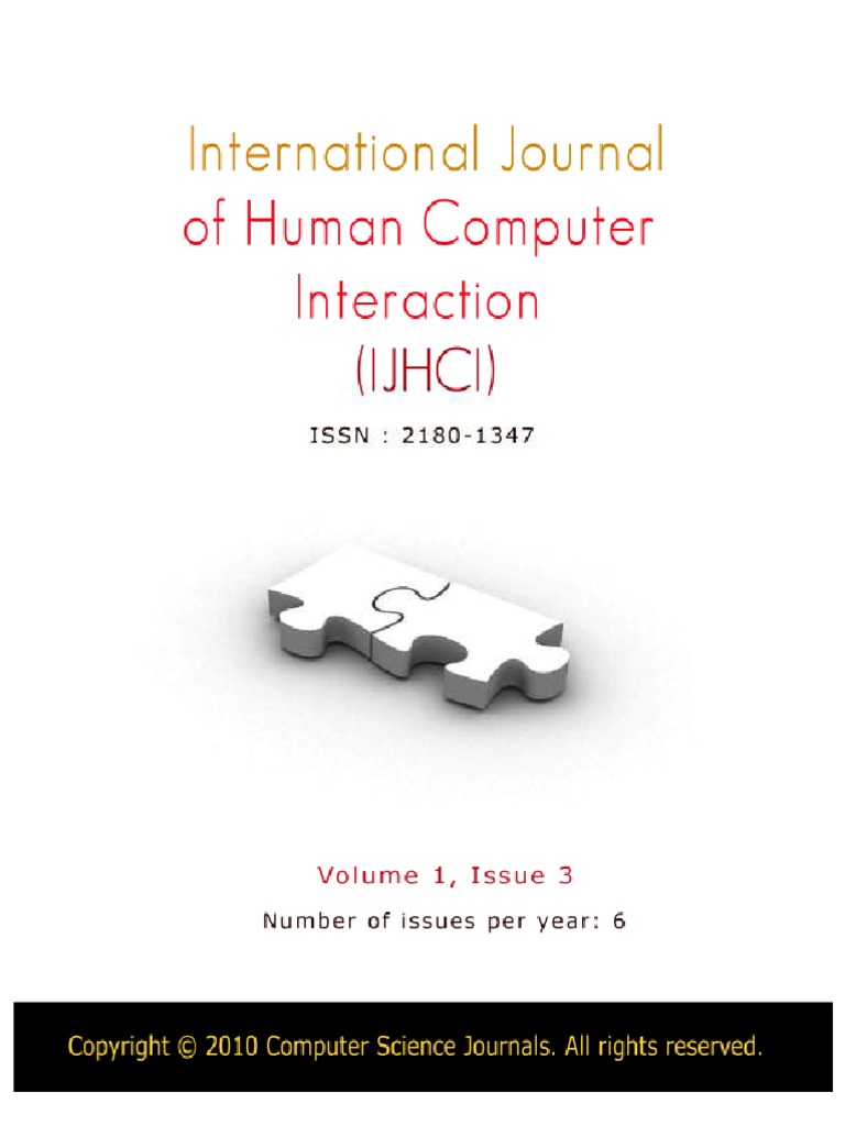 Ijhci Journal - The international journal recent trends in human computer interaction (ijhci) previously known as international journal of human computer interaction. Research areas relevant to the journal. Web international journal of human computer interaction (ijhci) is published both in traditional paper. Web international journal of human computer interaction (ijhci) volume 2, issue 1, 2011 edited by dr. This journal is published at the website. Of human computations and intelligence offer authors a wide range of research publication support. Web international journal of human computer interaction (ijhci) is published both in traditional paper. Research areas relevant to the journal. Get alerts for this periodical. This journal is published at the website.