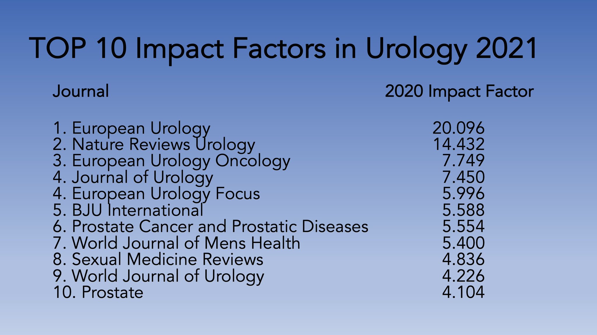 Kari Tikkinen on Twitter "New urology impact factors released! First