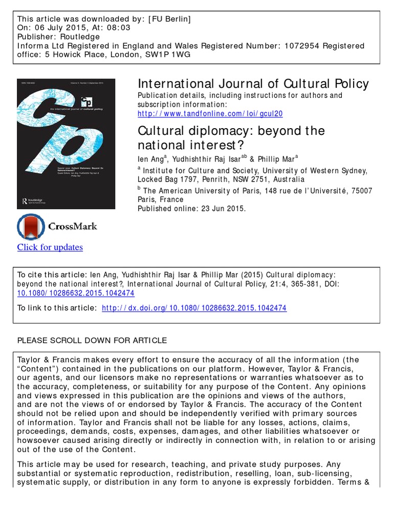 Cultural policies for sustainable development. Routledge, part of the taylor & francis group. Web the international journal of cultural policy is a peer reviewed journal.