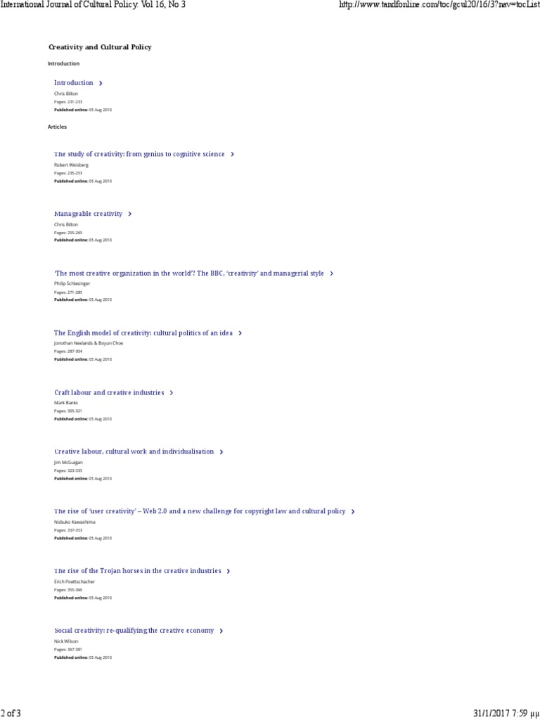 Content International Journal of Cultural Policy Vol 16, No 3 PDF
