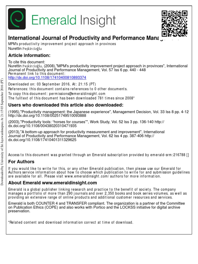 Web International Journal Of Productivity And Performance Management | Sciencegate.