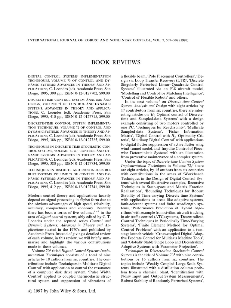 Web international journal of robust and nonlinear control explores topics in nonlinear system which can be helpful for research in disciplines like artificial neural network,..