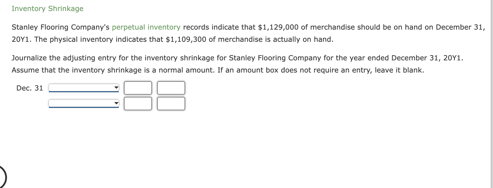 Solved Inventory Shrinkage Stanley Flooring Company's