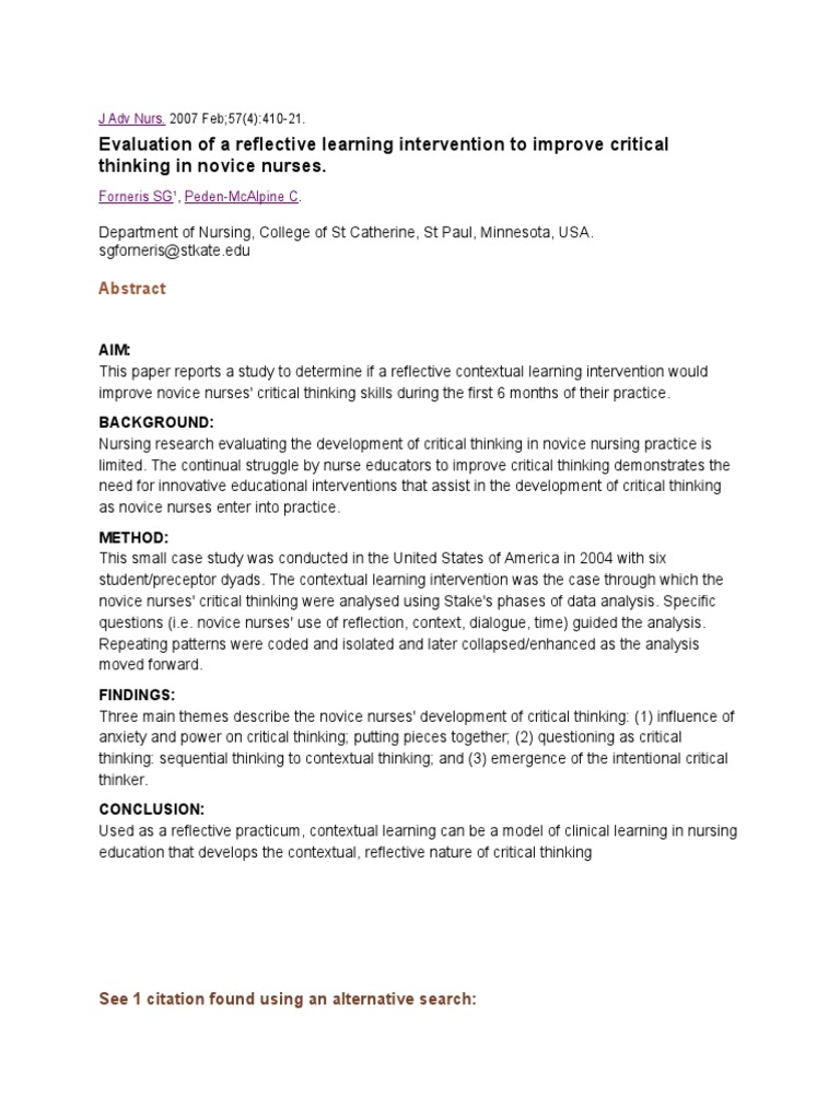 J Adv Nurs PDF Critical Thinking Nursing