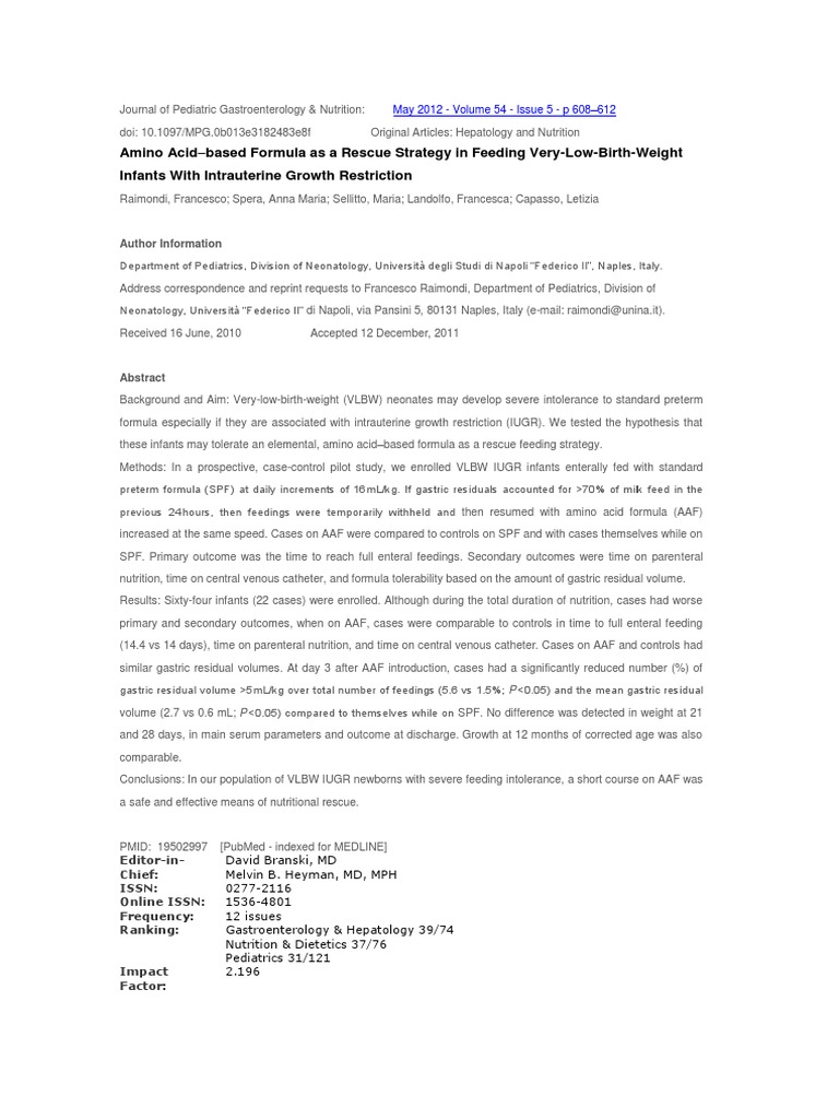 J Pediatr Gastroenterol Nutr PDF Neonatology Nutrition