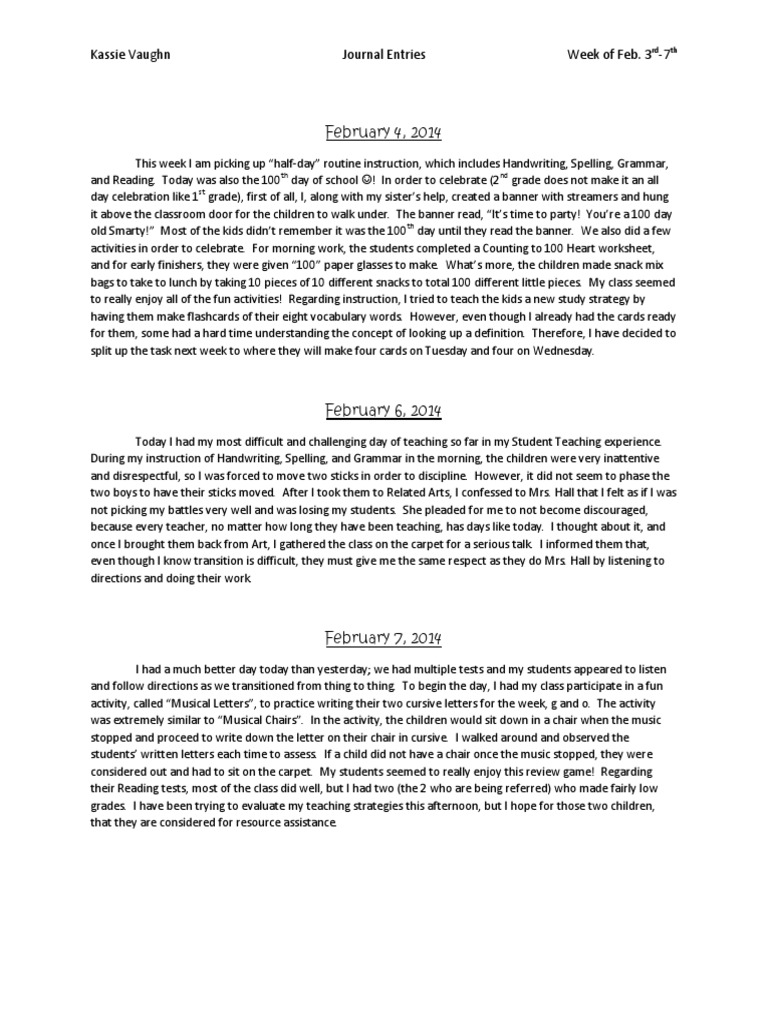 journal entries week of feb 2428 student teaching Classroom