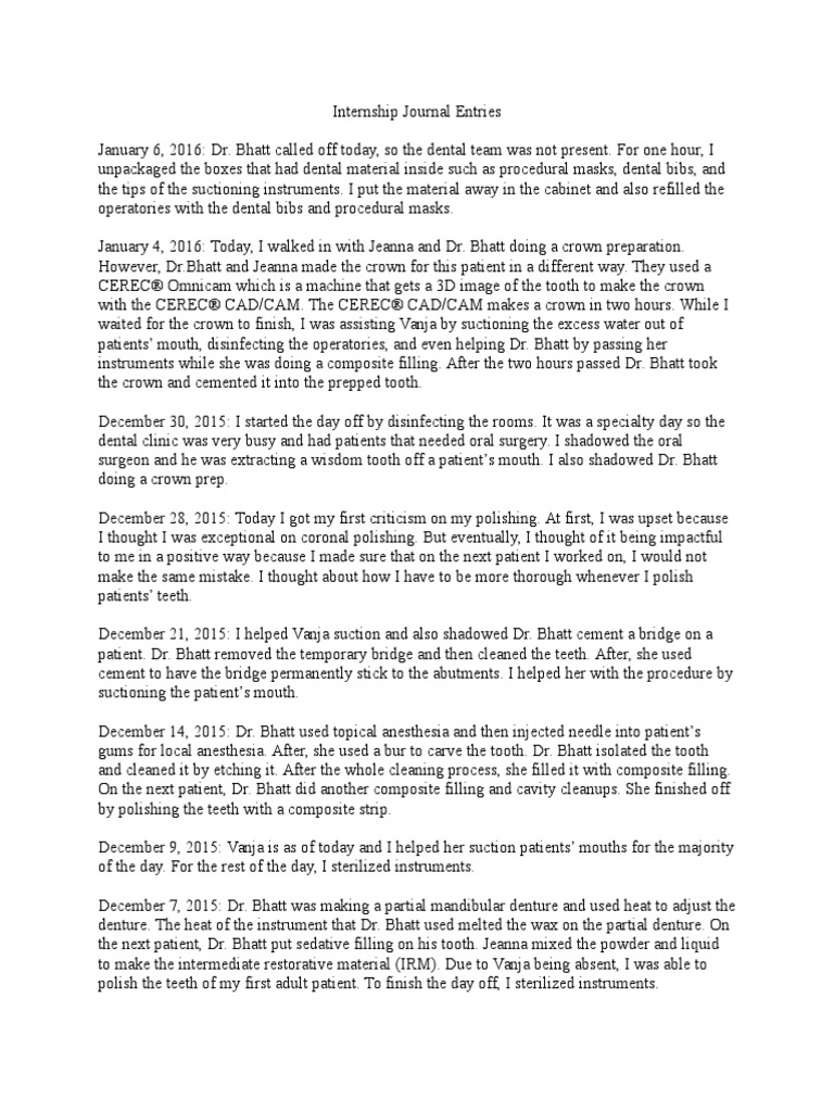 internship journal entries Dentures Dentistry