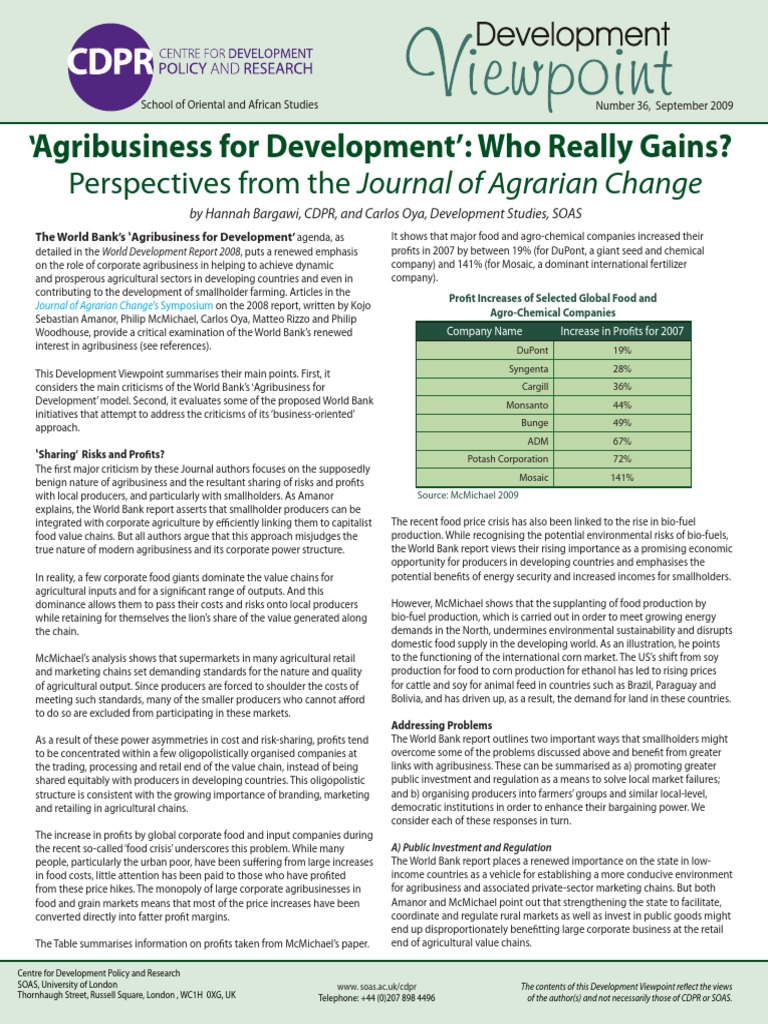 Perspectives From The Journal of Agrarian Change Agribusiness For