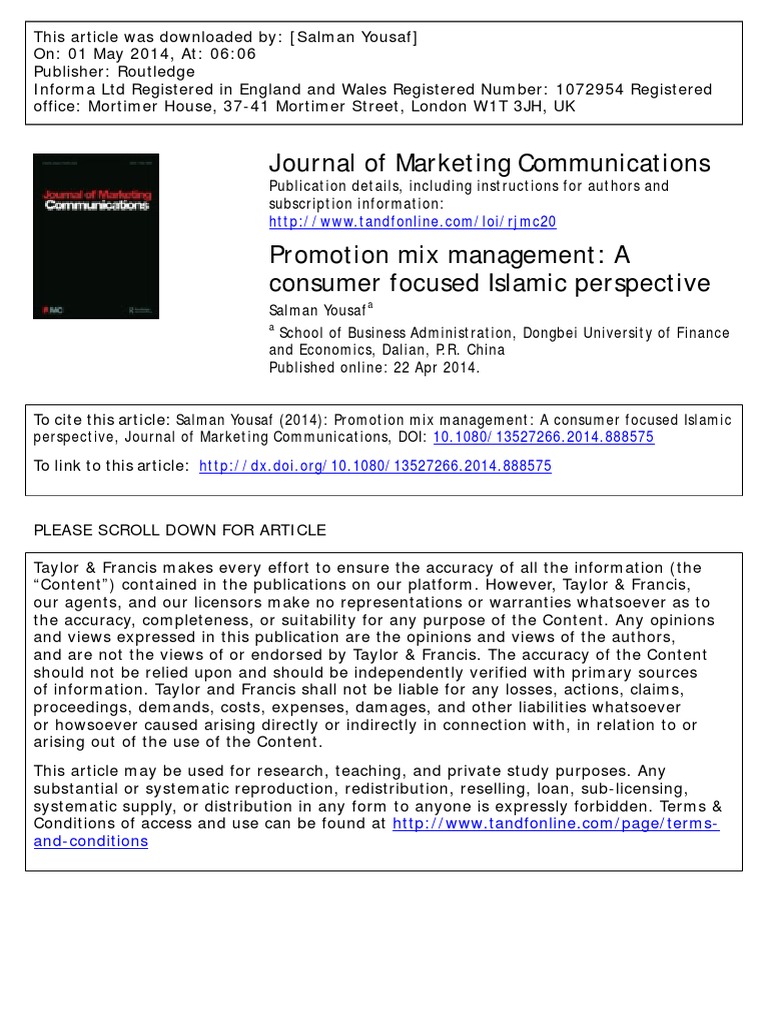 Journal of Marketing Communications Sales Hadith
