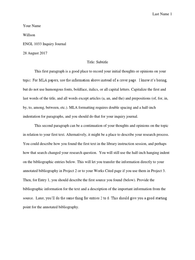 Inquiry Journal Template PDF Bibliography Written Communication
