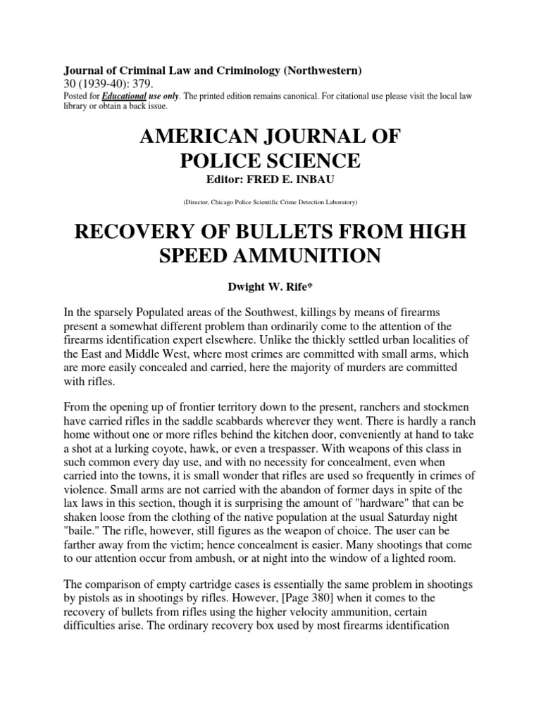 Journal of Criminal Law and Criminology Bullet Cartridge (Firearms)
